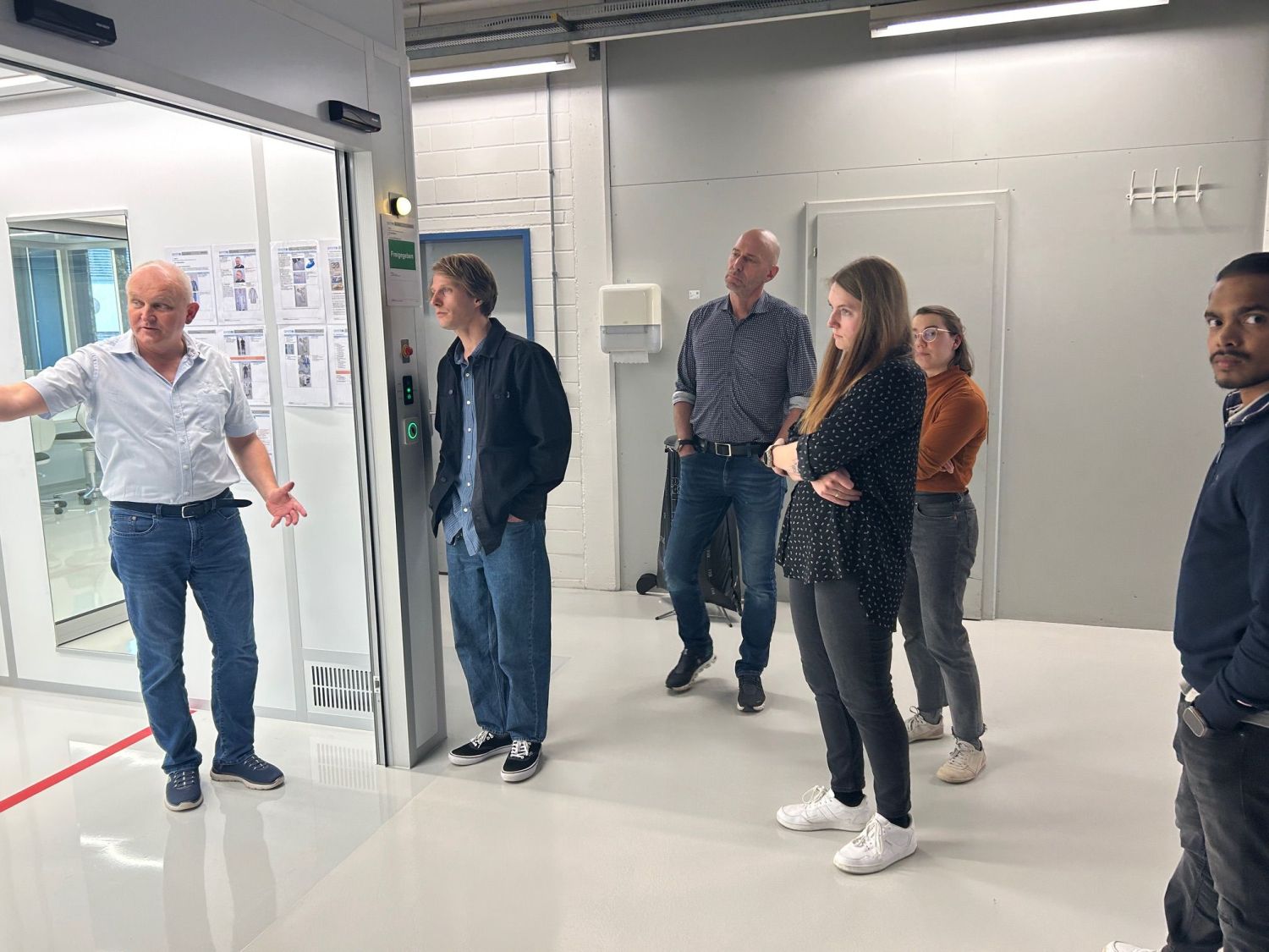 Ein weiterer zentraler Programmpunkt war das Thema Dokumentation und Datenintegrität, präsentiert von Frank. Der Begriff Datenintegrität wurde im GMP-Kontext klar definiert und anhand praxisrelevanter Beispiele verdeutlicht. Der Tag wurde mit einer praktischen Umsetzung im Reinraum bei avintos AG (Danke an Jérôme Chabloz für die Nutzung des Reinraumes) abgeschlossen: korrektes Einschleusen. Besonders wertvoll: Die vielen praxisnahen Tipps von Frank und Beatrice zum richtigen Ankleiden im Reinraum – von der Reihenfolge über typische Fehler bis hin zu entscheidenden Details, die im Audit den Unterschied machen
