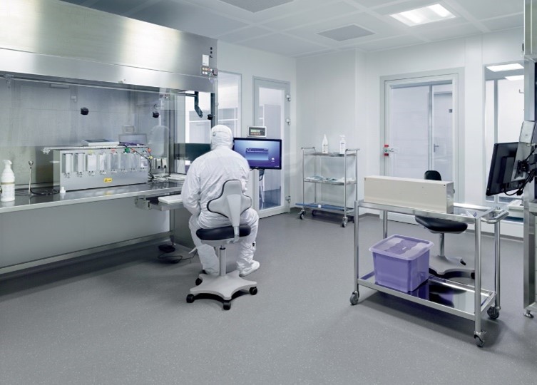 Bei der nachhaltigen Bodenauswahl für Reinräume und GMP-Bereiche spielt die Performance der Böden, insbesondere im Hinblick auf Widerstandsfähigkeit, Reinigungsfähigkeit und Desinfektionsmittelbeständigkeit, eine wesentliche Rolle. So tragen Reinigung und Sanierung, die je nach Bodenmaterial über den gesamten Lebenszyklus sehr unterschiedlich ausfallen, mehr zur Ökobilanz bei als die eigentliche Herstellung der Produkte. Noch größer sind die ökologisökologischen Auswirkungen bei einem vorzeitigen Werkstoffversagen, ganz abgesehen von den Störungen im Produktionsprozess. Allgemein gilt: Prävention ist besser als Instandsetzung. Eine gezielte Materialauswahl kann dazu beitragen, Ausfallzeiten zu verringern, den Unterhalts- und Wartungsaufwand zu optimieren und somit die ökonomischen und ökologischen Lebenszykluskosten des Bodenbelags zu reduzieren. Eine große Hilfe für Bauherrn kann ein wissensbasiertes Auswahlverfahren zur Auswahl nachhaltiger Böden darstellen, das vom KIT Innovation Hub für die pharmazeutische Industrie entwickelt wurde. Nach der Erstellung eines objekt- und nutzungsspezifischen Anforderungsprofils für das individuelle Objekt werden die verschiedenen Bodenmaterialien gegebenenfalls noch ergänzenden Tests unterzogen, beispielsweise zum Reinigungsverhalten oder um einen künstlichen Alterungsprozess zu simulieren und dadurch die Frage zubeantworten, wie die Oberfläche der Böden in zehn Jahren aussehen wird. Für einen nachhaltigen, wirtschaftlichen Unterhalt von Reinräumen sind Bodenbeläge ohne temporäre Beschichtungen, wie Kautschuk, besonders geeignet. Dadurch entfallen Beschichtungssanierungen ebenso wie die damit verbundenen kosten- und arbeitsintensiven Grundreinigungen. So werden Shutdown-Zeiten oder gar Produktionsausfälle vermieden. Ein weiterer Vorteil: Während der gesamten Lebensdauer des Fußbodens können große Mengen hochalkalischer chemischer Reinigungs- und Beschichtungsmittel eingespart werden – gut für Gesundheit, Ökonomie und Ökologie.