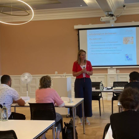 Den Seminartag begann mit Frank Zimmermann von der Firma Swiss Cleanroom Concept mit dem Thema Schutzkonzepte für reine Räume. Anschliessend ging es bei Beatrice Helene Tappenbeck ebenfalls von Swiss Cleanroom Concept mit dem Thema Verhalten in reinen Räumen weiter. Nach der zNünipause waren die Teilnehmer in einem Workshop zu: Definieren Sie die verschiedenen Schutzkonzepte und Verhaltensweisen, welche in reinen Räumen benötigt werden, beschäftigt.