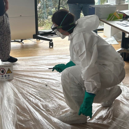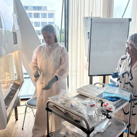Nach dem wohlverdienten Mittagessen, gings beim Workshop Workshop „Zyto-Herstellung live“ mit Nazameh Stohrer vom Unispital Basel und bei Dario Muzzin von der Firma Corrgo AG im Workshop „ Desinfektion“.