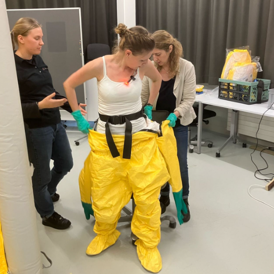 Dann ging es zum praktischen Teil über und zwar in die Firma Praevena AG in Rheinfelden. Dort wurden in drei Workshops unter der Leitung von Silke Büchl, Sven Wendland, Laura Dorman; Praevena AG und Niklaus Keel das An- und Abziehen von PSA inklusive Dekontamination - An und Ausziehen eines Schutzanzuges mit integrietem Atemschutz und Richtiges Desinfizieren bzw. richtige Hautpflege erlernt und ausprobiert. Einige Lacher blieben da nicht auf der Strecke. Die zahlreichen Teilnehmer waren begeistert und wir werden das Seminar im nächsten Jahr wieder durchführen.