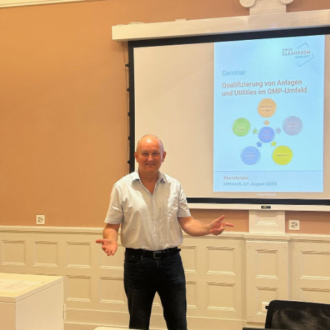 Am Mittwoch, 27. August 2025 fand im Hotel Schützen in Rheinfelden das Seminar: Qualifizierung von Anlagen und Utilities im GMP-Umfeld statt. Der Seminartag begann mit dem Einstieg Anforderungen an die Qualifizierung und Qualifizierung einer Reinstwasseranlage (WFI) mit Frank Zimmermann von der Firma Swiss Cleanroom Concept. Nach der zNünipause war Dominik Hengge von der Firma: Ellab mit dem Thema Qualifizierung von Sterilisationsapparaten an der Reihe.