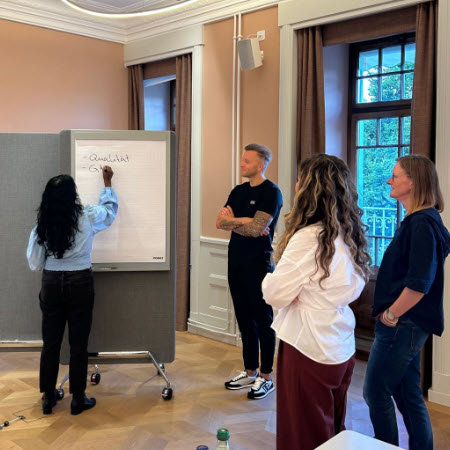 Nach der wohlverdienten Mittagspause war bei Beatrice das Thema Umgang mit Konflikten in Audits und Inspektionen an der Reihe. Natürlich durfte auch ein Workshop mit einem Inspektionskonflikt in einem Rollenspiel nicht fehlen. Trotz Ernsthaftigkeit, durfte dabei der Humor nicht fehlen. Bei Frank ging es weiter mit Regulatorische Aspekte – FDA Quality Metrics Programm. Nach der süssen zVieripause und zum Abschluss des Seminartages führte uns das Thema Nachbearbeitung bei Audits und Inspektionen mit Frank zum erfolgreichen Ende.
