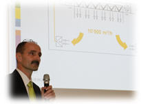Alessandro Cerminara, Leiter Gebäude- & Energietechnik des Universitätsspitals Basel, präsentierte die Fakten und Meilensteine des Projektes Sanierung und Erweiterung OP-Ost. Er hob hervor, was im Projekt speziell zu beachten war und welche Hürden geschickt zu meistern waren, und wie im Spital die Qualifizierung aufgebaut ist. Ebenso zeigte er auch die Struktur des Universitätsspitals Basel und die weiteren Projektetappen auf. | ![]() |