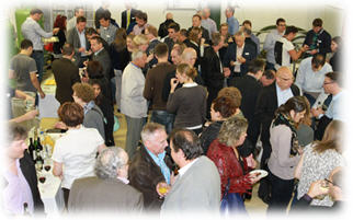 Die Besucher waren fasziniert, die OPs in diesem Baustadium besichtigen zu können, ist man doch sonst nur als Patient in diesen reinen Räumen. Nach der Besichtigung trafen sich die Gruppen wieder im Pumpwerk des Universitätsspitals Basel zum Apéro. Dort war schon alles fein gedeckt und die Teilnehmer genossen es, den Abend gesellig bei einem Glas Wein, Bier oder Jus mit einem kleinen Imbiss ausklingen zulassen. Die vielen Eindrücke im Gespräch zu verarbeiten und auch die Möglichkeit, sich mit Reinraumkolleginnen und Kollegen austauschen zu können, wurde rege genutzt.