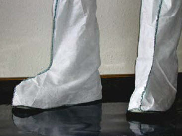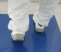 Eine Möglichkeit ist der Einsatz von Klebefolienmatten, die aus 30 Lagen zäher, dünner Polyethylenfolien bestehen und so eine nur 2mm dicke Matte bilden. Jede der Folien ist mit einem Kleber beschichtet, der bei Berührung Festteile von Schuhsohlen und Transportgeräten aufnimmt. Wenn die Klebekraft abnimmt, wird die oberste Folie abgezogen und eine neue liegt obenauf. |