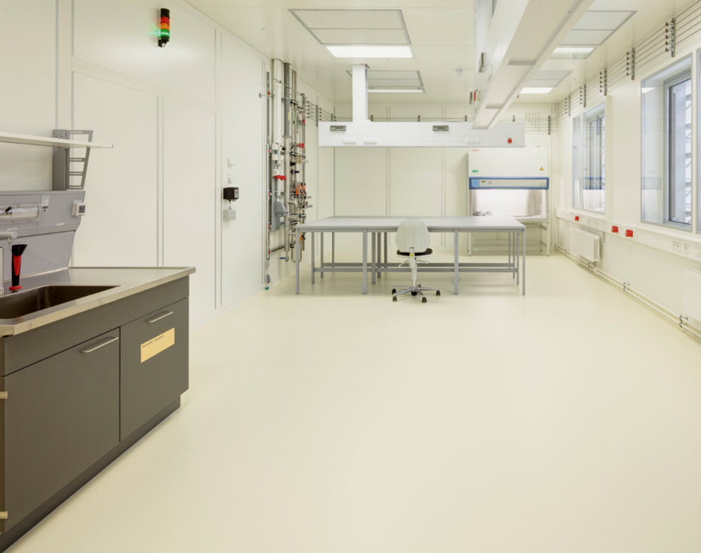 „Sowohl für den Nutzer als auch für die Sprinkenhof GmbH als Bauherr war auch die 10-jährige Gewährleistung, die nora auf die ESD-Eigenschaften seiner Böden gibt, ein wichtiges Argument“, sagt Carolin Hübner, eine der Projektleiterinnen beim Architekturbüro burckhardtpartner REINERBECKER. nora Böden sind homogen und volumenleitfähig, ohne Adern, Fasern oder Wachse. Die Erdung erfolgt über ableitfähigen Klebstoff und Kupferbänder zum Potentialausgleich. „Wir haben das Gebäude für mindestens 20 Jahre von Sprinkenhof gemietet und weil wir über diese lange Zeit wechselnde Nutzungen in den Laboren haben werden, wollten wir alle Labore von vorneherein mit einem elektrostatisch ableitenden Boden ausgestattet haben, auch dort, wo dies im Moment vielleicht noch nicht erforderlich ist", erläutert Finger. „Für uns ist es wichtig, dass alles reibungslos funktioniert – und das auf lange Zeit.“
