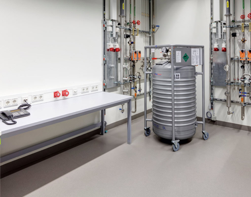 Ein harter Untergrund war im CHyN von vorneherein tabu: „Die Proben, mit denen die Wissenschaftler hier arbeiten, sind im Schnitt nur zehn mal zehn Millimeter groß und die darauf befindlichen Strukturen liegen im Nanometerbereich. Für uns war deshalb klar, dass der Bodenbelag eine extrem gute Trittschalldämmung aufweisen muss, um jegliche Vibrationen zu vermeiden und ein erschütterungsfreies Arbeiten zu gewährleisten“, erläutert Finger. „Somit schied eine harte PU-Beschichtung aus“. Die Architekten rieten zu Kautschuk. Durch ihre Dauerelastizität reduzieren nora Böden Trittschall und auch unerwünschte Schwingungen. In einigen Laboren des CHyN befinden sich beispielsweise 600 Kilogramm schwere optische Tische, auf denen Mikroskope oder Spektrometer aufgebaut sind. In diesen Bereichen muss der Boden zuverlässig Erschütterungen absorbieren, um die Messergebnisse nicht zu verfälschen. Ein weiteres Plus: nora Böden vermindern auch die Geräuschentstehung beim Gehen und sorgen so für eine ruhige Arbeitsatmosphäre und zugleich für ein ergonomisches Arbeitsumfeld.