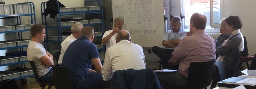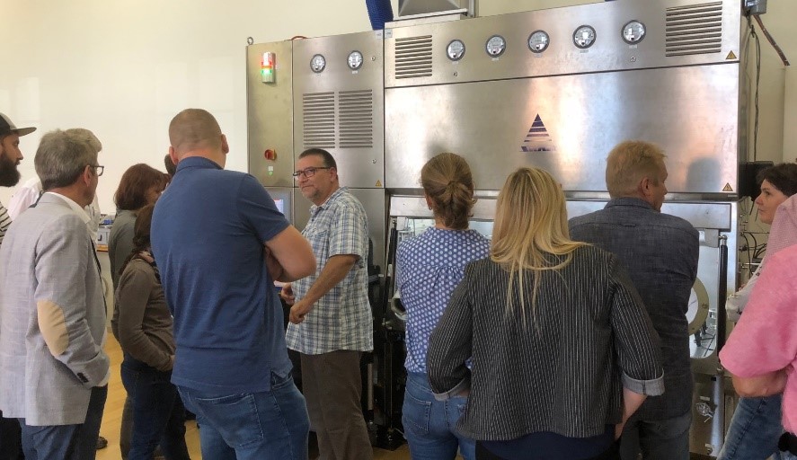 Richard Denk zeigt den Teilnehmern vor dem Mittagessen zudem technische Massnahmen in der aseptischen Herstellung zum Mitarbeiter und Produktschutz auf.
