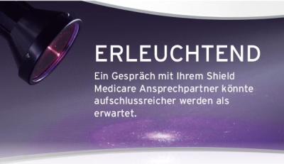 Sie werden dabei ausführlich über das DDESystem von Shield Medicare informiert. Die innovative UV Lampe ist ein Teil unseres einfachen drei Schritte Systems.