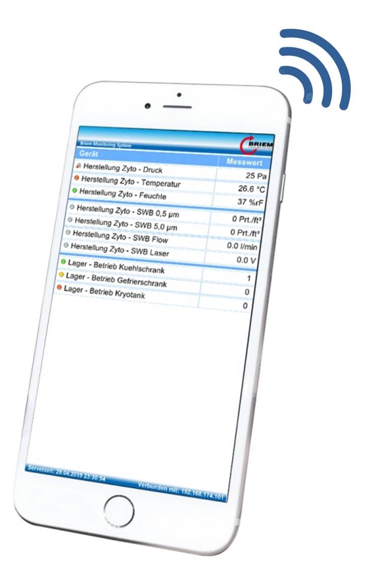 Um noch schneller auf jede kritische Änderung reagieren zu können, bietet BRIEM nun die Möglichkeit, die Daten mit dem Funkstandard NFC drahtlos auf mobile Endgeräte zu übertragen. NFC steht für „Near Field Communication“, also für die Kommunikation zwischen zwei Elementen, die sich nahe, sprich wenige Zentimeter, beieinander befinden. Bei diesen zwei Elementen kann es sich auf der einen Seite um den Kühlschrank mit den Blutkonserven handeln, auf der anderen Seite um ein Smartphone – oder noch besser: eine Smartwatch, die der verantwortliche Mitarbeiter stets am Handgelenk trägt. Er identifiziert die Messstelle, indem er seine Uhr in die Nähe des NFC-Tags hält. Er bekommt Messwerte und Alarmzustand auf seinem Display angezeigt. Überschreiten die Werte den grünen Bereich, kann per E-Mail oder SMS eine Alarmierung auf die Smartwatch übermittelt werden – dann vibriert die Uhr. Der Mitarbeiter weiß sofort Bescheid, kann die alarmierte Messstelle orten und gegebenenfalls eingreifen. Mit NFC-Tags lassen sich nicht nur Kühlschränke ausstatten, sondern auch Partikelzähler oder andere Sensoren. Eine weitere Möglichkeit ist zum Beispiel die Strömungsüberwachung im Reinraum bei der Arzneimittelherstellung. Um die Werte zu überprüfen, muss der Mitarbeiter das Produkt dazu nicht extra ausschleusen. Denkbar ist auch der Einsatz im Hochregallager. Denn gerade hier sind die Messsensoren oft nicht zugänglich, grafische Anzeigen fehlen. NFC-Tags an den Regalen machen die Temperaturüberwachung über die Smartwatch sehr einfach und sicher. |
