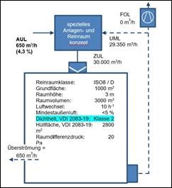 Abbildung 3: Beispiel für einen innovativ ausgelegten und definiert dichten Reinraumbereich, mit maximal effizienter Absenkmethode.