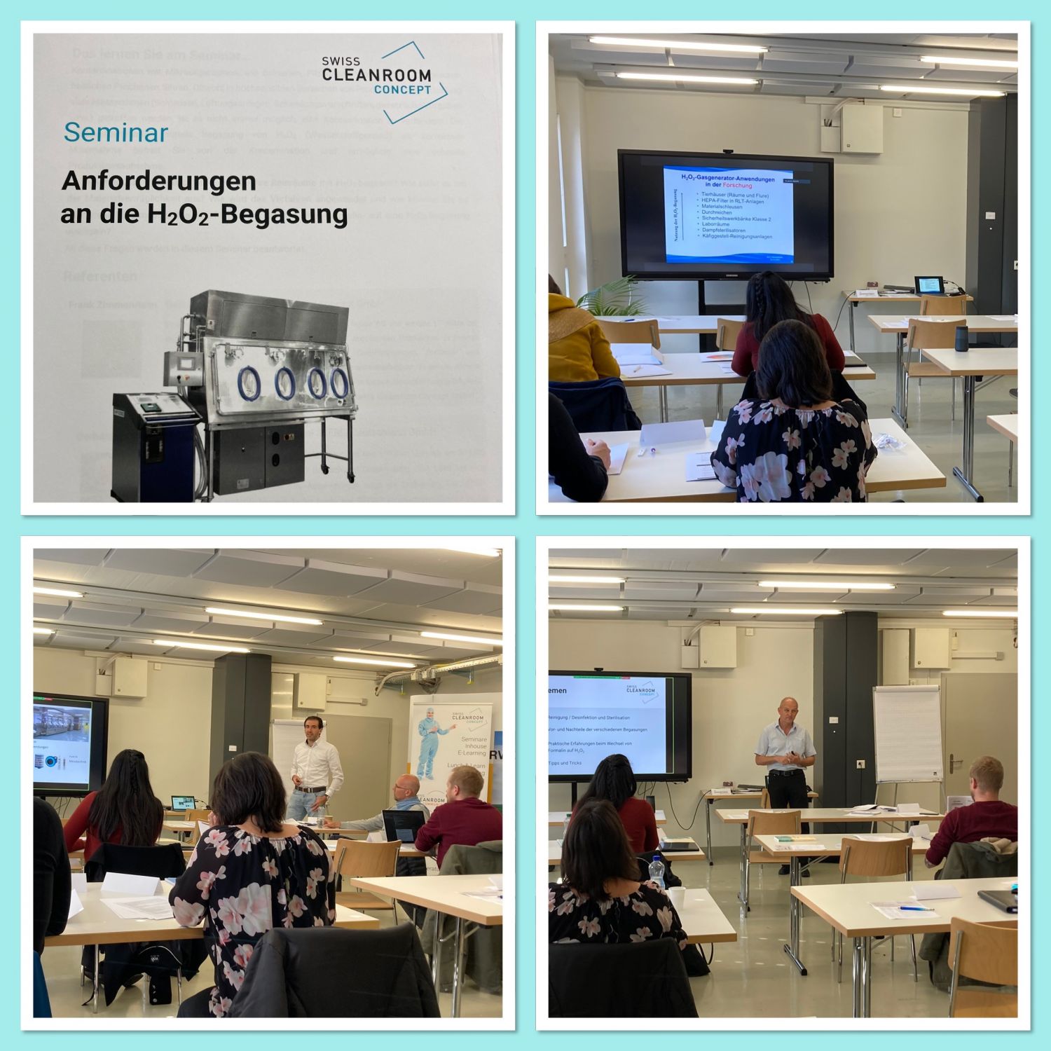 Unsere Referenten Gerhard Lauth; STERIS, Florian Dahm; Dräger und Frank Zimmermann; Swiss Cleanroom Concept vermittelten ihr vielfälltiges Wissen an die Teilnehmer.